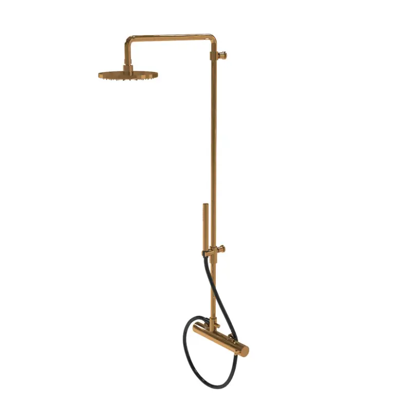 Descoperiți combinația de dus Waterevolution Flow cu termostat și dus de ploaie PVD din cupru periat T141TCPE. Acest produs de înaltă calitate, marca Waterevolution, se distinge prin designul elegant și modern, fiind perfect pentru orice baie. Cu o înălțime de 1195mm și un diametru de 200mm, setul de duș are o proiecție de 330mm și o distanță centrală de 150mm.