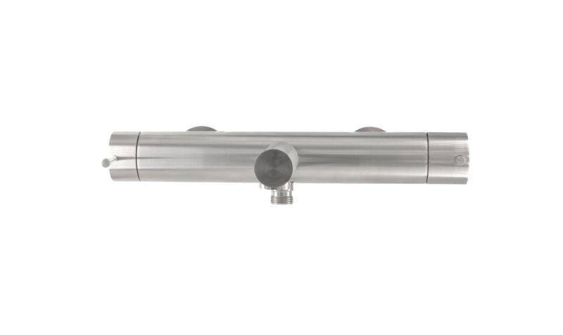 Termostatul pentru cadă este fabricat din alamă de înaltă calitate și finisat cu un strat cromat durabil. Acest lucru garantează o durată lungă de viață, o rezistență excelentă la coroziune și un aspect luxos. Datorită mecanismului termostatic, temperatura setată rămâne stabilă, chiar și în cazul fluctuațiilor de presiune a apei.