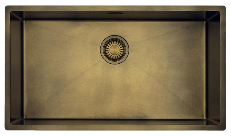 Pure.Sink Luxion Chiuvetă mare din bronz antic PVD 74x40 cm pentru montare sub blat, încastrare și montare pe blat cu raft inferior PLX7440-64