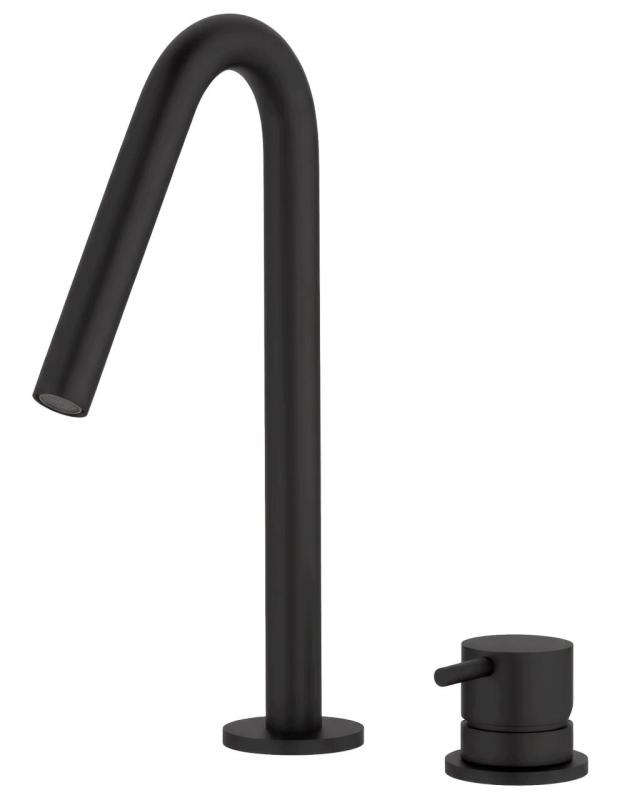 Robinetul de baie Waterevolution Flow cu 2 orificii, de culoare neagră mată, cu un mic jet de 120mm, cod T1121VPR.