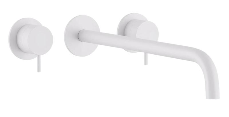 Waterevolution Flow Robinet de chiuvetă încastrat cu 3 găuri, alb mat, cu gura de scurgere de 21 cm T1163FBR-21