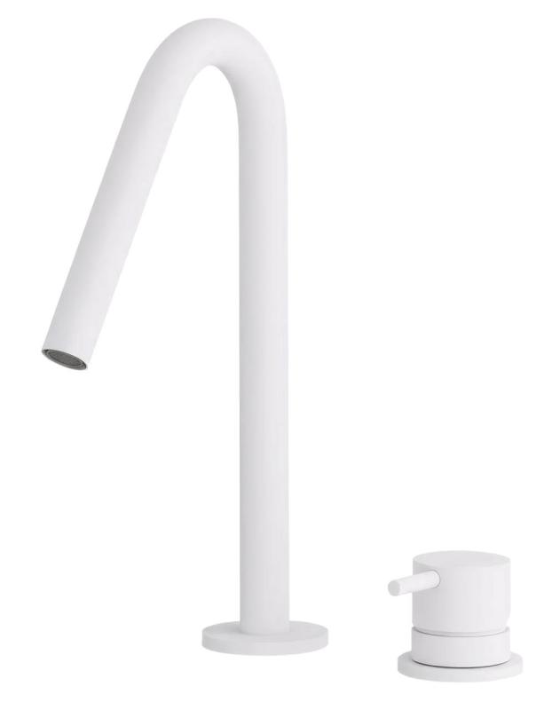 Waterevolution Flow Robinet pentru chiuvetă cu 2 găuri, alb mat, cu bec mic V 120 mm T1121VBR